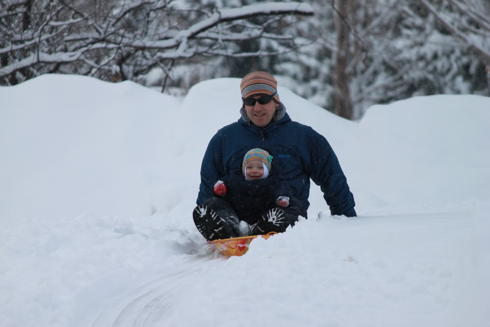 Early On came to assess Willow the week before last. She is right on track developmentally for her corrected age, which we are very happy about. She was especially good at doing the puzzles - the lady said a particular one normally couldn't be done by kids until age 2 1/2. One thing the lady asked is, since we have a nanny, if we'd be interested in attending any of the Early On playgroups to help Willow socialize to other kids. I don't think we need to. Willow actually has been getting out and about quite a bit lately. We get together with Willow's friend Maisa and her mom every few weeks, and of course there's the weekly music class and my monthly parenting group. Willow also recently attended a sledding birthday party for her friend Aspen (I know,another tree :) ), and she was invited to another sledding party next weekend too. When we're around other kids, she doesn't play "with" them so much as next to them, but as I understand, that is normal for this age. I know she likes seeing other kids; whenever we're going to go somewhere in the car and I tell her that and start bundling her up, she always says, "baby?", meaning, "Will there be other babies there?"